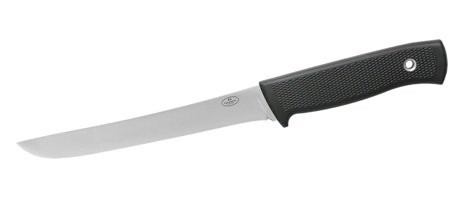 F2, F3 och F4 är ett koncept av högkvalitativa knivar avsedda för slakt, styckning och tillvaratagande av fisk. Basen är det välformade, säkra F-skaftet och till det har vi utvecklat tre bladformer som var och ett är anpassade för sitt speciella ändamål. Till skillnad från många andra tillverkare envisas vi med att använda ett riktigt bra eggstål och även om det medför produkter som är fem-tio gånger dyrare menar vi att det är ett riktigt koncept. En billig slaktkniv kännetecknas av dålig skärpevaraktighet samt att den slipas sönder tämligen fort medan en kniv från oss kan användas under decennier. Det ger inte bara en god totalekonomi utan erbjuder också en arbetsglädje och säkerhet i jobbet. Självklart ska den inte bli liggandes efter jakten utan får gärna göra tjänst i köket! Knivarna levereras med en zytel slida. Bäst, enklast och snabbast skärper du dem med ett diamantbryne eller diamantstål