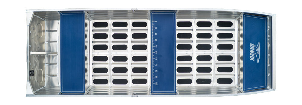 Invändigt är båten utrustad med ett halkskydd längs hela durken samt mjuk mörkblå EVA-softteak på sittytorna med integrerat måttband på mellersta bänken för att enkelt kunna mäta sin storfångst.