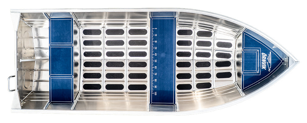 Invändigt är båten utrustad med ett halkskydd längs hela durken. Bänkarna är försedda med mjuk mörkblå EVA-softteak med integrerat måttband på mellersta bänken för att enkelt kunna mäta sin storfångst. Möjlighet till förvaring finns i bakre bänken samt i fören.