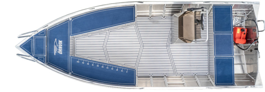 Örnvik 500R är vår största fiskebåt. Till skillnad från Örnvik 500 så är Örnvik 500R utrustad med en styrkonsol vilket ger en helt annan upplevelse körmässigt. Båten har otroligt fina sjöegenskaper och är gjord för den stora familjen som vill ut på tur men även för den fiskeintresserade som behöver en stabil båt med mycket plats att röra sig i. Passar utmärkt för större sjöar och kustnära vatten. Det plana golvet gör att båten är lätt att röra sig i.