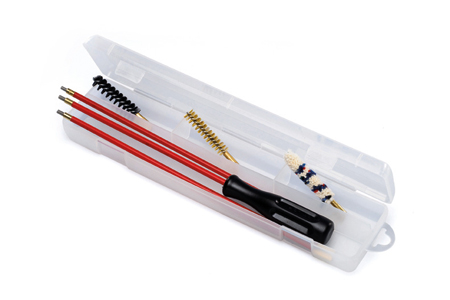 Komplett vapenvårdskit med 3-delad läskstång och tre olika borstar.